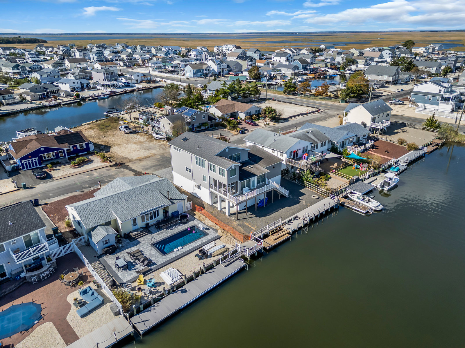 Welcome to this unique 4 Bedroom, 3 Bath waterfront home offering over 3,000 square feet of coastal comfort. Raised in 2013, this contemporary style home combines peace of mind with style and space for year round living or a perfect shore retreat. Enjoy tranquil water views from multiple balconies and porches. Bright living areas filled with natural light from skylights and large windows. The property features a vinyl bulkhead with a newer floater and ramp, ideal for boating and water activities right from your backyard. Inside, you'll find a functional layout with generous living and dining areas, a well equipped kitchen, and private bedroom spaces for family and guests. The home is equipped ...